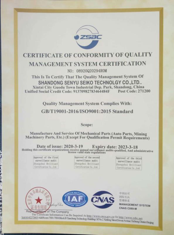 山東森宇精工科技有限公司成立于2005年,位于五岳獨(dú)尊的泰山腳下,經(jīng)濟(jì)發(fā)達(dá)、交通便利。是一家集科研、生產(chǎn)、銷售于一體的國家高新技術(shù)企業(yè),占地60000多平方米,建筑面積46000平方米,職工100余人,其中專業(yè)技術(shù)人員28名,碩士生6名,博士生2名。主要從事三個(gè)板塊的生產(chǎn)制造業(yè)務(wù):一、近凈成型精密鑄造及高端精密加工業(yè)務(wù);二、礦山智能化設(shè)備制造業(yè)務(wù);三、健康凈水系統(tǒng)裝置生產(chǎn)制造業(yè)務(wù);先后通過ISO9001、CE/PED等國際體系認(rèn)證,產(chǎn)品遠(yuǎn)銷歐盟、美國、韓國、日本等發(fā)達(dá)國家和地區(qū),并為全國各大礦山企業(yè)提供配套產(chǎn)品和服務(wù)。